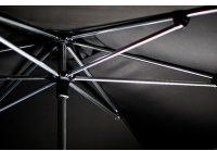 Elk metalen onderdeel van de Sublimo is geanodiseerd. Door een speciale behandeling wordt het metaal voorzien van een mooie roest- en slijtbestendige laag die licht glanst. Ook en misschien juist deze details maken deze designparasol tot een unieke aanwezigheid.